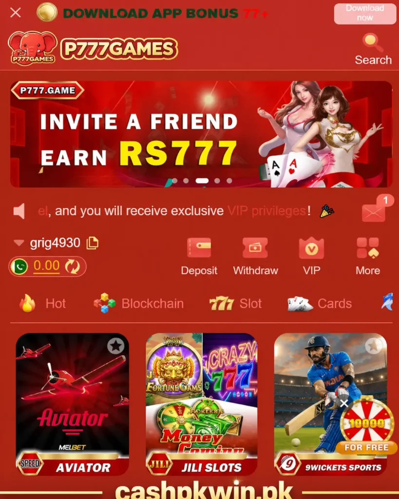 The app also has an offers section where users can check invite rewards, rebates, missions, events, and other bonus updates. Users who want to try the app should download it from cashpkwin.pk or the trusted official source to avoid fake APK files. P777 games also gives access to wallet tools, local payment options, customer support, and account settings for a smoother playing experience.
